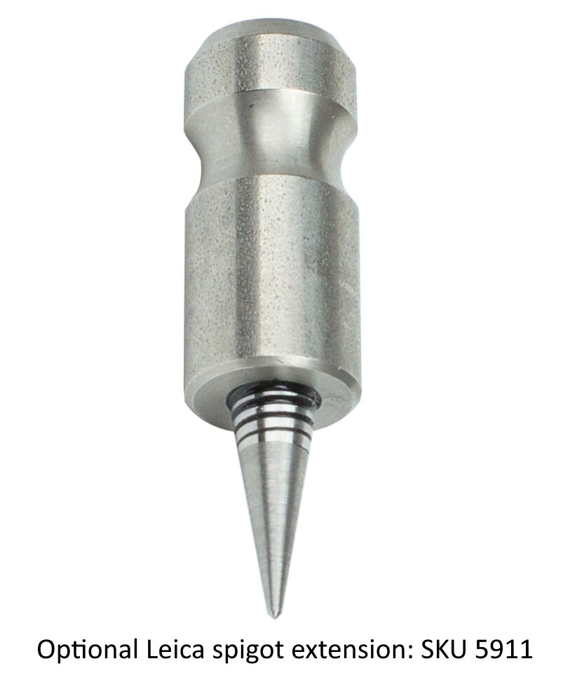 A Leica spigot is inserted into the Mini-Vektor and locked by an internal spring lock.