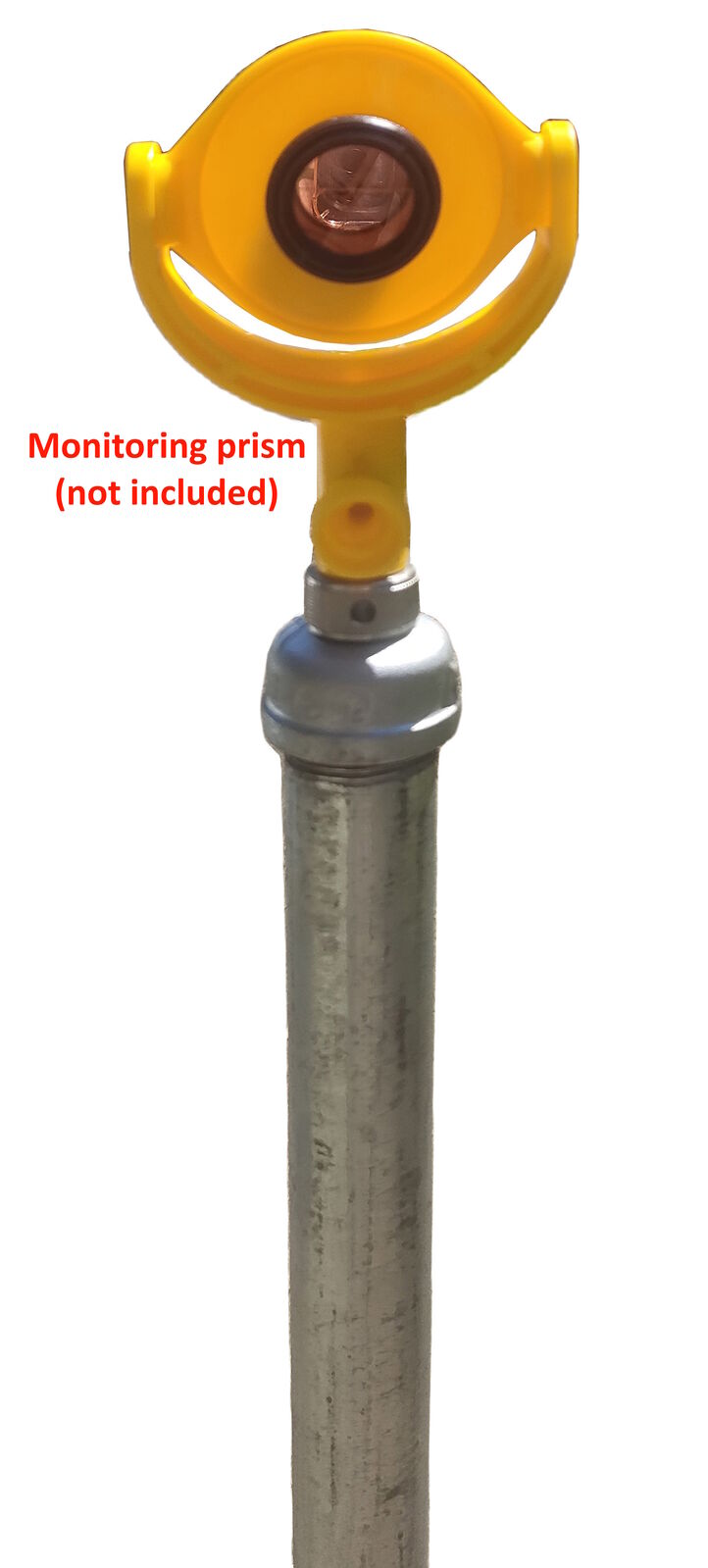 The galvanised steel cap is fitted with a stainless steel spigot adapter for monitoring using a level or total station.