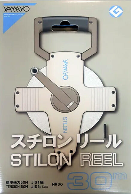 Yamayo Stilon 30m, open winder Nylon Coated Steel Tape features a steel core completely enveloped with thick protective white nylon.