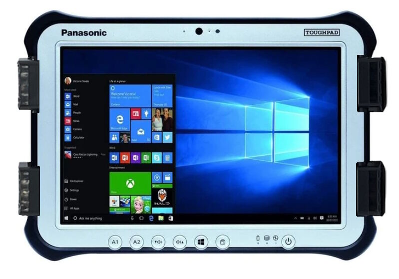 Will hold a Panasonic Toughpad with extended battery.